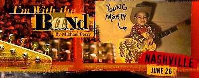 A postcript: I'd never been to Atlanta. Now I have. I was asleep in a bunk when we arrived. It was dark when we left. Based on what I saw in between, Atlanta consists of a loading dock, a parking ramp and a sign for the Galleria Mall. Now I know what the bus driver meant when he told me, "I've been all across America and never seen it." Because You Asked: Usually the band and crew stop to eat at truck stops or diners. Marty has a weakness for Cracker Barrel restaurants; bass player Steve Arnold is more likely to heat up a Tupperware container of low-fat rice and beans in the on-board microwave. At the shows food is usually catered. Based on my experience it ranges from sublime to subhuman. Tomorrow: Marty plays the historic Ryman Auditorium. And why is he telling everyone about his Fruit of the Looms? Oh those country lyrics! A special thanks to "Meg and Dad" who sent the following touching verse:
