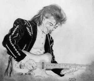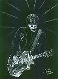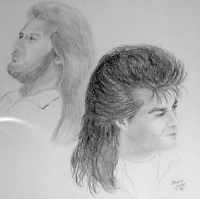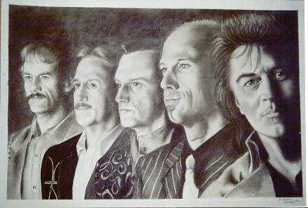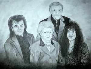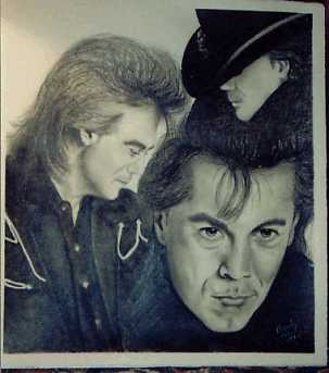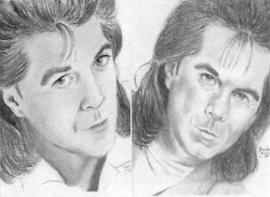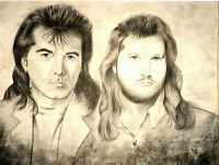 | In 2002, Beverly did these portraits of Marty, Gregg, Brad and Steve. Little did she know that when she was finished with these, that Gregg, Brad, and Steve would no longer be part of the Rock and Roll Cowboys. Bev, these drawings are phenomenal and are a lasting tribute to the band members we loved so much. |