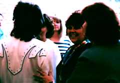 Rather than go on and on, here are the rest of the photographs. They show Marty working the crowd again, welcoming Connie when she arrived, giving his speech, talking with Bruce Hinton, Chairman of MCA Records, and working the crowd again. That was pretty much it until we got ready to leave and ran into Marty again. I asked him how he was going to survive his hectic Fan Fair schedule. He said, "I don't know my schedule for the week and I don't wanna know my schedule." Got to see Donna Lewis and Leslie Anne Rawlings and Jodee Stocki was there too. Met Ingrid who has promised to check out these pictures on the website. You might also like to read what Terri Smith, the curator of this exhibit, had to say about the process of choosing the photographs. |