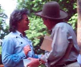 Fan Club Party - Smiley Hollow on June 13, 2000 - Page 2Enjoy these photos from the Fan Club Party taken by fans who have graciously allowed me to put them on the website. These first three pictures were sent by Beth. She also included a photo of Marty after he "crashed" Travis Tritt's fan club party. Mario Mattioli took the one of Gregg Stocki and Hilda Stuart. Mary Runyan took the photos of Briley and Brad Davis, Brenda talking with Marty and the GREAT one of the man himself. |