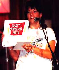 If you're gonna come to the fan club party, you need to bring some extra money. A lot of wonderful Marty memorabilia was up for bid. Jodee played auctioneer. The first item up for bid was the script from Marty's Christmas Party taping for TNN. The script and schedule for the taping was included. Bidding started off slowly but ended at $150.