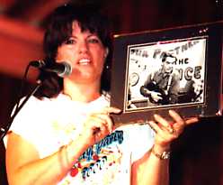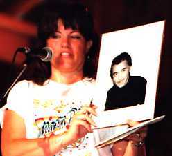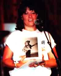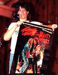 Next up were two posters from the Double Trouble Tour. Travis Tritt's Fan Club Staff was at the party and Jodee tried to interest them in bidding. They yelled out, "we've already got one." Jodee also mentioned that "I know you can't get Travis to sign anything." The first poster went for $150 and the second one for $155. Probably the most interesting items up for bid were two photographs taken by Connie of Marty when he "starred" in the movie "Hi-Lo Country" as Reno Slade. These were photographs that made Marty almost unrecognizable! Jodee kept saying that nobody else in the world had a copy of these photos. The first one went for $150 and the second one for $175.