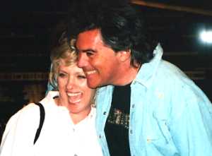 Marty's mom, Hilda, was making her way through the crowd, talking with everyone. She came over and asked if we'd gotten another pet (we haven't). She talked about their dog Buddy (a gift from Marty) and their three cats (one of which had spent the evening on Marty's lap when he'd come by for a visit). We spotted Connie coming our way. Connie's fans surrounded her and she gladly signed autographs and posed for pictures. Some fans came bearing gifts as well. Connie is such a sweetheart. Mario insisted that I go talk with Connie. I really think he just wanted to get up close and personal to her -- as any normal red-blooded man would. She gave us both a hug and posed for a picture with me. Dumb me completely forgot to wish her luck in the Golden Voice Awards, which were to be presented the next day on the General Jackson. She didn't need my luck because she WON the Female Golden Voice Award for 2001.