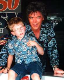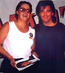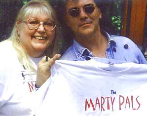 | Lisa Sammons smiles while Marty's quenching his thirst! Okay, he's ready to pose. | |
