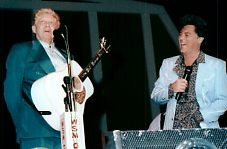 Friday night, Marty played host to Opry regulars Jeannie Seely, the Osborne Brothers and Del Reeves. Marty and the band got to perform four songs--a new one called "That'll Be All Right With Me," "Last Date," "Hey Baby" and "Hillbilly Rock." Marty mentioned he had performed "Is This My Destiny" at the funeral of Helen Carter (of the Carter Sisters) who had passed away earlier in the week. Marty begged Jeannie Seely to sing her big hit "Don't Touch Me." Jeannie's Girl Scouts were right down front to watch their favorite performer. Marty wanted Del Reeves to do his Roy Acuff imitation. Marty is, without a doubt, the biggest fan the Opry has. Being a Friday night, there weren't a lot of people backstage. Marty usually makes himself accessible to those fans wanting an autograph or picture. It was nice seeing him in something other than all black--it sure makes the pictures look better. Here are a couple other pictures from Friday night's show. Continue scrolling down to read about the Saturday night shows. |