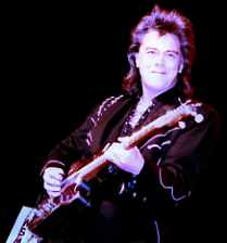 Johnny Russell brought Marty and the band on stage and they shared a joke (about a dog that Johnny sold to Marty -- a Doberman). Steve had mentioned they were performing "Sometimes The Pleasure's Worth The Pain" which I call an updated version of "Tempted." Marty said he wanted to rock the house. It certainly is a rockin' song. Then they performed "Dark As A Dungeon" the same hauntingly way they performed it in Metropolis. Marty stops playing the mandolin halfway through the song and the emotion of the song pours out through his arms. The picture below really shows this.