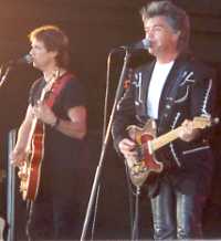 What can I say......... the angels smiled down on us and brought us good weather after all that rain in the A.M. Marty was REALLY HOT! One of the women yelled for him to take off his jacket and he said "You take off your dress!" "I promised Connie I wouldn't show my butt anymore." Then he just laughed and laughed. He was in TOP FORM. Loved his tight leather pants and that leg action, Wow. As LaDonna said, there were alot of fan club members there and it was lots of fun talking to everyone. I saw Evie and Judy during the second show and they had row #1 seats right by the walkway. They should have some great pictures.