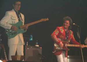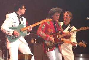 Next to end the show was Jerry Lee Lewis. He sang all his hits and Marty stayed onstage and played with the band, Jerry did not know he was up there until the last song!! Marty tried to get him out for an encore but he wouldn't! And the show was over. They were signing upstairs but the line was wrapped down the steps, I did not stay! Boy I miss FAN CLUB PARTIES. |