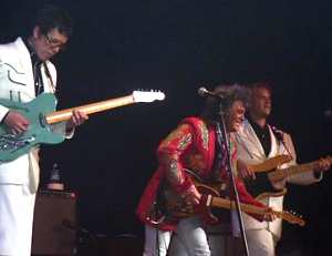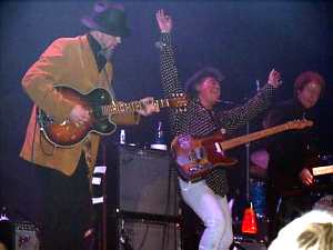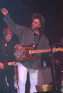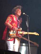Marty then came on for about 40 minutes, sang "Hey Baby," "Burn Me Down," "Kenny Plays the Boogie Woogie," "The Whiskey Ain't Workin'," a beautiful gospel song with Harry singing lead, "Hillbilly Rock," "Dark Bird," "Draggin' the Line." Connie was sitting to the side but he did not bring her out.