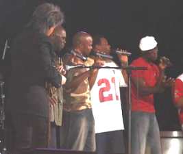 The Late Night Jam was okay, not enough Marty! We were packed in those pews like sardines!!! The young bluegrass band was excellent, but the guys who stole the show were Naturally 7. They do all the instruments with their voices and boy could they sing! They did several songs and then Marty came out and said they needed a white boy from Mississippi in their band!! He played mandolin and they sung "Amazing Grace" (out of this world)!!!