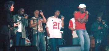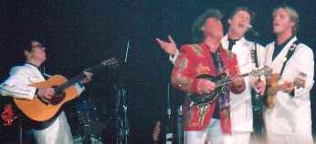 Marty introduced Naturally 7, a very talented group who, with no instruments at all, could make the sounds of all the instruments. Bass, drums, you name it, they could play it, but all through their voices and throats. Marty and Connie both sat on the side stage and really enjoyed it. The guy who imitates drums sat down and gave us a show, throwing the (invisible) drum sticks in the air and hitting the cymbals. Wow! Marty brought out his mandolin and asked if they could use a "white boy from Mississippi". They all played "Amazing Grace".