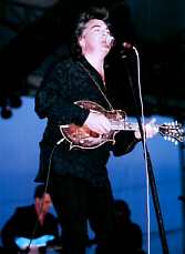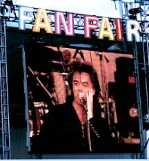 He said he's been coming to Fan Fair since 1973 and this would be the last one before the next century. (Did he say he would love to come out and hug everybody's neck? I took notes during this show and I can't read them. LOL). Next they performed "The Pilgrim." He received warm applause for his great mandolin playing, however the crowd was more interested in talking than listening to a extremely inspirational song. At one point, the cameraman went behind Marty on stage and you could just see Marty's shadow against a sea of stadium and stage lights. The effect was incredible--did anybody capture that on film? The song received a rousing appreciation from the audience.