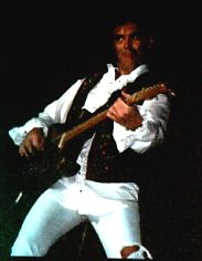 I met Heather and Dee at the blackjack table, Leah and Deanna went home that afternoon, so our group was now down to three. Now keep in mind this is the show that the Burger King convention bought out and we were supposed to sit in the balcony. I knew that Marty money was gonna come in handy.... slipped the maitre'd a little grease and yes my friends we were right back at table 61! Now this convention group was a little rowdy right from the get go, and of course the ones behind us were the worst. The show started promptly at 8. Once again we covered our drinks; no elephant goobers for us. This time ole Bertha leaned really close and I'm thinking "please don't fall on me until I see Marty one more time!" The comedian did his same routine and then it's time for our man. This time the guys were all in black and Marty wore washed-out jeans with a rip about mid-thigh and white shirt with ruffles at the sleeves and up the lapels with black buttons, a black vest with red roses, a baby blue jacket with red inlays. He looked way too fine. He opened with "Doin' My Time" and told how much he loves Johnny Cash and hoped we all did too. He said "We've been out here since 1967 and we've got how many days left?" [he looked at Gary who said 3 ] and Marty said "Oh what do you know, you've been at Mustang ranch all day!" [that's the local bordello]. He then said when they got home they were going to rest a few days and then go to work on the new album. He told us his producer Tony Brown had flown out that day and they had rehearsed the album from 3 to 6 that afternoon.