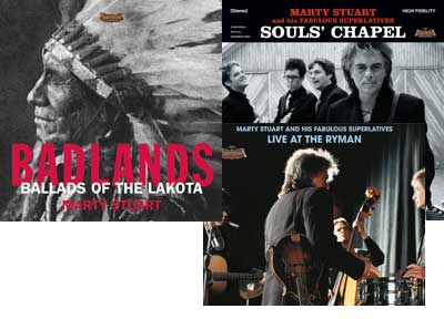 In fact, you'd be hard-pressed to find a more rocking gospel album than the first of the three, Souls' Chapel, or a more lively set of modern bluegrass than the most recent, Live at the Ryman. The latter includes a banjo-driven version of Stuart's breakthrough hit, "Hillbilly Rock," that scorches the electric original. With a stack of old bluegrass chestnuts (and a between-songs joke that's even older), Ryman is all about the picking. Not everyone can afford to open their set with "Orange Blossom Special," the kind of workout that an easily worn-out group would save for the finale. [3-1/2 stars] Still better is Souls' Chapel, a celebratory gospel album instead of a fashionably ominous one. Leaving the mandolin in its case, Stuart hangs the disc on a tremolo guitar sound that would be more at home on a Fat Possum blues disc. Stone-country vocal harmonies are matched with Memphis soul material (two songs from Pops Staples and one from Steve Cropper), but the mix never sounds forced not even when Stuart makes the hymn "Way Down" sound just like "Baby Please Don't Go." [4 stars] Only one well-intentioned dud keeps this trilogy from ranking as a career peak. Released between the other two albums, Badlands: Ballads of the Lakota is properly respectful of the Sioux people. But it's a mixed bag of field recordings, spoken interludes, and epic rock ballads, making it more an educational experience than a musical one. The grandiose finale (two songs in 15 minutes) tries way too hard, and only on the scathing "So You Want to Be an Indian" does Stuart summon the righteous anger that Johnny Cash brought to his similar-themed albums in the 1960s. [2 stars] By Brett Milano |