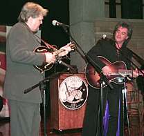 Isaac Hayes, Ricky Skaggs, Ruby Wilson and Marty Stuart out-glittered the coin they came to honor Monday (Jan. 14) as musicians, songwriters, politicians and bureaucrats converged on the Country Music Hall of Fame in Nashville to celebrate the issuance of the Tennessee commemorative quarter. Overall, though, the proceedings were decidely more folk than pomp. Authorized by Congress in 1997, the special quarters are issued in the order that the states joined the union. Admitted in 1796, Tennessee is the 16th of the 50 states to be accorded the honor. The design on the back of its quarter spotlights Tennessees musical heritage with engravings of a trumpet, guitar, fiddle and songbook. Shawn Stookey, a school teacher from Waverly, Tennessee, created the winning design. Clutching a mandolin he would not play until the finale, Skaggs opened the proceedings with an a cappella rendering of "Amazing Grace." Kyle Young, director of the Country Music Foundation, welcomed the standing-room-only crowd that jammed the museums Ford Theater and spoke of musics social importance. "This music [represented on the quarter] formed what was sometimes the only bridge between diverse elements of the new country," he said. He added that "the preservation of Americas blue-collar music" is the museums main goal. Tennessee Gov. Don Sundquist introduced singer, songwriter and actor Isaac Hayes, who brought the crowd to its feet with his soulful a cappella interpretation of "God Bless America." "God bless Isaac Hayes," said the governor as the crowd stood and cheered. "We get so accustomed to the music," Sundquist mused, "that we forget how special Tennessee is." While giving Stookey credit for the design, Sundquist noted that "If you have any complaints about it, I was the one who made the decision." Stookey won over approximately 1,000 other entrants. Seated near Sundquist were United States Treasurer Rosario Marin and Director of the Mint Henrietta Holsman Fore. Turning to them, Sundquist quipped, "I know the people in the Treasury cant have favorites, but I know that deep in their hearts this is their favorite quarter." Wayland Holyfield, chairman of the Nashville Songwriters Foundation and writer of such hits as "Can I Have This Dance" and "Rednecks, White Socks and Blue Ribbon Beer," opened his remarks with the best joke of the morning: "Behind every successful songwriter," he intoned, "theres an astonished mother-in-law." A long-time lobbyist for songwriter rights, Holyfield praised the quarters design, but observed wryly that, "Unfortunately, quarters are about all some people want to pay songwriters." Stuart said he hadnt seen the quarter until his arrival at the presentation ceremonies. "Were remodeling a house right now," he said, looking at his wife, Connie Smith, seated nearby. "Anyone who doesnt want his [souvenir] quarter, well be happy to take it." Wise-cracking to Hayes, Stuart said, "Ill just nominate you to be in the Country Music Hall of Fame. Shaft is a great country song." Ruby Wilson wowed the crowd with her version of "Tennessee Waltz," turning the doleful, genteel lament into an angry womans tirade against her man-stealing best friend. After extolling the commemorative quarters value as teaching tools, Treasurer Marin reminded the gathering that the coins also had some economy-boosting value. "Dont just collect them," she scolded, "use them." Tennessees poet laureate, Margaret Britton Vaughn, read her composition for the occasion, "Mr. Tennessee Music Man," and drew a chuckle with the poems last line: "Theyre singing our songs around the world/In different quarter times." Director Fore presented Gov. and Mrs. Sundquist with the original art work for the quarter, signed by U. S. Mint engraver Donna Weaver. Skaggs and Stuart closed the program with the Carter Family chestnut "Will the Circle Be Unbroken." Stuart played Mother Maybelle Carters guitar (which is on display at the Museum), and Skaggs played his own mandolin (which, Stuart, pointed out had "cost a lot of quarters.)" Seated behind them, Hayes and Wilson mouthed the words to the old song quietly until Stuart invited everyone in the room to sing along. By Edward Morris |