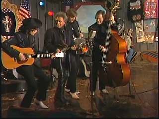 Eddie Stubbs started the show by introducing the guests. "From Nashville, Tennessee, the country music capital of the world and home of the air castle of the south, it's The Marty Stuart Show, featuring Marty Stuart, the Rolls Royce of country singers Miss Connie Smith, the ole Tennessee Slicker Leroy Troy, along with all the Fabulous Superlatives: Cousin Kenny Vaughan, Handsome Harry Stinson, the Apostle Paul Martin plus Gary Carter on steel guitar, and today's special guest Dierks Bentley with his guitarist Rod Janzen. Join us for 30 minutes of fun and great country music. I'm your announcer Eddie Stubbs. Now how about a Superlative welcome for our host, the coolest cat in the cornfield. Here is Marty Stuart." Marty said, "Thank you Eddie Stubbs. I got big business to talk to you about. Handsome Harry .... ." Marty and The Fabulous Superlatives performed "The Whiskey Ain't Workin'."