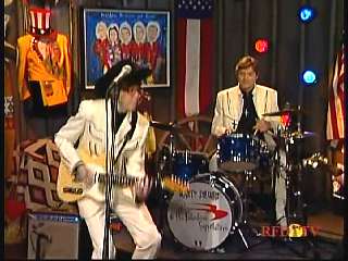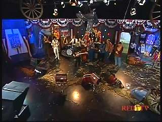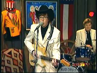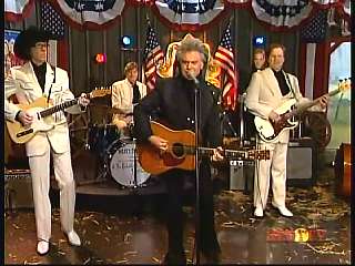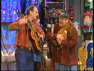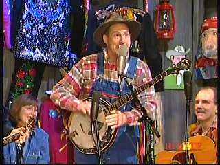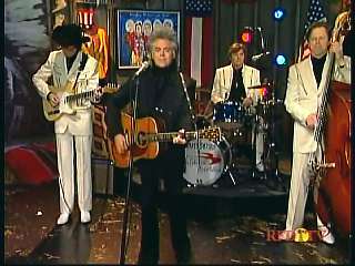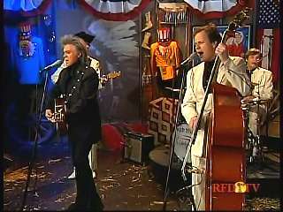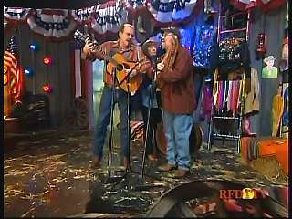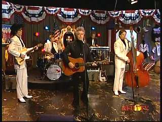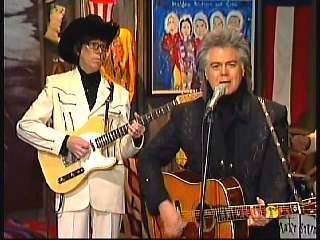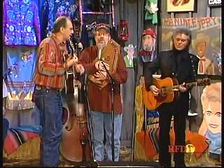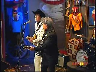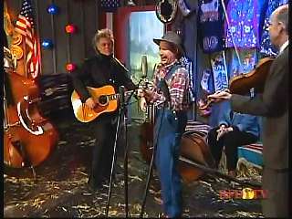 Marty said, "Thank you for tunin' in The Marty Stuart Show. Had them California blues, Superlatives. Sounded good, Mr. Carter. Now let me tell ya about a sound. It is the blues and country music and gospel music all rolled into one. Comes from the eastern state of Tennessee right in the corner of Virginia. Almost a hundred years ago, Mother Maybelle, Uncle A.P. and Aunt Sara Carter came across the mountain with a sound that has become synonymous with American music. Truly spiritual, wonderful music. Carryin' on that great sound is Janette's little boy, Uncle A.P. and Sara's grandyoung'un, along with his great band, Hello Stranger. From Scott County, Virginia, ladies and gentlemen, how about a hand for Mr. Dale Jett and Hello Stranger with a great Carter Family song. .Welcome children. There's Oscar and Teresa and ole Dale." They performed "No Depression In Heaven."