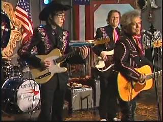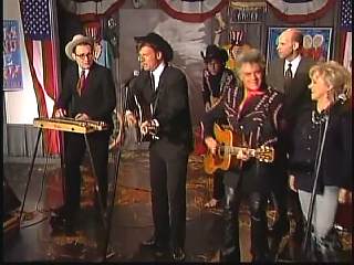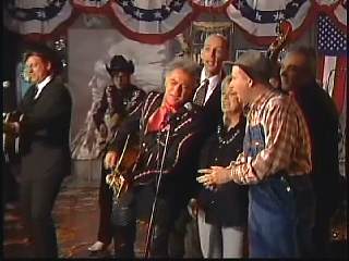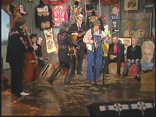 Eddie promoted Connie's boxed set Born To Sing. After a commercial break, Marty said, "Welcome back. Apostle, that Gary Carter took care of business on 'Lonely Street'. Mighty fine pickin' Mr. Carter. Well, we'll take care of all good things right now. Ladies and gentlemen, the sultan of Goodlettsville, the most popular man in country music. Here he is. You've asked for him for a return visit. One more time. How about a hand for Leroy Troy everybody. Hey ..... there's my man. You know Chuck, Chris, Gary and Connie. Hello Leroy." Leroy: "Howdy Marty." Marty: "What is the good word from Goodlettsville today, sir?" Leroy: "Oh I tell ya what. There ain't no good word." Marty: "No? What's up?" Leroy: "Well You know my uncle that's been so sick?" Marty: "Yeah." Leroy: "Just found out this week. The doctor told him that he's just got sick months to live." Marty: "Ahhhh" Leroy: "So anyhow, my uncle told him that he wasn't going to be able to make the payments " Marty: "To the doctor?" Leroy: "Yeah the doctor payments. So the doctor gave him six more months. He did." At this point Marty started laughing and could not stop. Marty: "One letter came in ....... that wanted to hear you and me sing a song together." Leroy: "Really." Marty: "And I mailed it to myself." Leroy: "Well....." Marty: "Can we sing one?" Leroy: "Yeah." Marty: "Whatcha wanna do." Leroy: "Let's play 'Roll on Buddy'." Marty" "Thought you'd never ask."