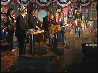 Eddie Stubbs said, " 'You wouldn't roll so slow if you knew what I know'. Sounds like I've got a lot to learn right there. Great to hear Marty Stuart and Leroy Troy there with 'Roll on Buddy'. The songs of inspiration are ones that are loved by all of us here on the show and we get a lot of response from you the listener and viewer who like them as well. Marty Stuart's got one picked out that Sara Carter wrote years ago and he's going to do it for us here this week. 'Farther On'. "