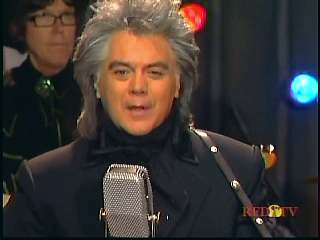Marty said, "Hi everybody. I'm Marty Stuart and I wanna thank you for tuning in my TV show tonight. Lotsa good things in store. To begin with, we have a national treasure. I tell you, some of the greatest songs in contemporary American songbook come from the heart, mind and soul of this man right here. How 'bout a hand, ladies and gentlemen, for my friend and yours, the great John Prine. Hello Mr. John Prine. Come in here. Hey, hey. Hello, John." John said, "Hello, Marty." Marty continued, "Do what you wanna do. It's all yours, man." John performed "Speed of the Sound of Loneliness."