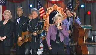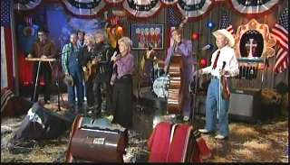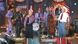 Marty said, "Thank you, lawyer Maddox." Don said, "You're welcome." Marty said, "All right. Yes." Eddie said, " 'The Philadelphia Lawyer'. A song written specifically for the Maddox Brothers and Rose by Woody Guthrie. One good song deserves another. Connie Smith is going to do this one for us today, joined by the cast. The Maddox Brothers and Rose had this out back in the late 40's and it became an instant classic. 'Gathering Flowers For The Master's Bouquet'."