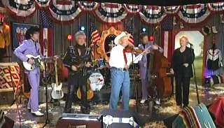 Marty said, " 'Down, Down, Down'." Eddie promoted Nashville, Volume I: Tear The Woodpile Down. Eddie said, "Great work, Marty. 'The Lonely Kind'." After a commercial break, Marty said, "I'm honored to tell ya that this show is sponsored by the Magnolia state. I'm speakin' of the great state of Mississippi. A place I dearly love. Mississippi is regarded as the birthplace of America's music. Mississippi also serves as host to nearly 200 historical stops along the way on the Blues and Country Music Trails that run thoughout the state. Now if you're travelin' through Sledge, Mississippi, you might consider visitin' one of country music's great heroes, Mr. Charley Pride's trail marker. 225 miles down the road from Sledge you're gonna find the Emerald City of Meridian, Mississippi, a royal musical destination. The good news is that fast progress is bein' made on the building which will serve as the mother ship for all things created in Mississippi. I'm speakin' of the Mississippi Arts and Entertainment Center. The entertainment center will serve as home to the stories, songs, paintings, archives and treasures from the musicians, writers, visual artists, pickers, sinners, saints, prophets and poets of the past, present and future that call Mississippi home. I consider it an honor to be a legacy of the state that claims the likes of Charley Pride, Jimmie Rodgers, Tammy Wynette, Eudora Welty, Pops Staples, Elvis Presley, Muddy Waters, Willliam Faulkner, just to name a few. We'll all be at the entertainment center so how 'bout a hand for dear ole Mississippi, Charley Pride's trail marker in Sledge, and Meridian, Mississippi and it's buildin' of the Arts and Entertainment Center. Speakin' of entertainment, this next one is gonna be big. Leroy and Karen, you had to call a lawyer in. Who's that behind ya?"