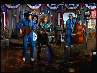 Eddie Stubbs said, "Ah Leroy Troy right there and 'Little Pink'. Leroy, she sounds like a real dreamboat. I think you need to try and find her and put her on the show with you sometime. Well, let's settle down right now and get serious. We'd like to encourage you come Sunday morning, you and yours to attend the church of your choice. And with that in mind, we'd like to declare hymn time this week. Here's Marty Stuart and the Fabulous Superlatives quartet with one of the old favorites, 'Over In The Glory Land'."