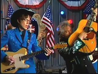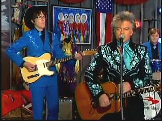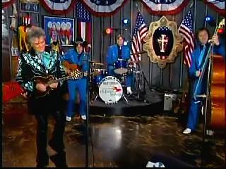 After a kissing Connie, Marty said, "Thank you, baby. You sold one record to Charley. I love Saturday nights. As Leroy Troy told me one time, Saturday night's the best night because it's the night of country music. And I grew up watching country music down in Mississippi. And some of my heroes, of course, were Buck Owens and the Buckaroos, Johnny Cash and the Tennessee Three, Charley Pride and the Pridesmen, George Jones and the Jones Boys. Flatt & Scruggs ..... all those boys. I wanted to grow up and do that. Back to Johnny Cash and The Tennessee Three, I loved those guys because they had a really strange-looking guitar player named .......Luther Perkins. And I loved Luther's playing. And John wrote a song for his little band that featured Luther's style of guitar playing to showcase him a little bit. And we took that song ...... left the first half alone to salute our old heroes, the Tennessee Three and kinda wrote the back half to reflect the Superlatives and Cousin Kenny Vaughan's unique style of guitar playing. So, Cous, shall we play 'Luther Played The Boogie Woogie,' ladies and gentlemen, in the strangest kind of way."