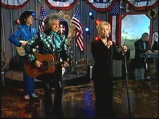 Eddie Stubbs promoted Marty's photo book Country Music: The Masters. After a commercial break, Marty said, "Thank you for watching us. Superlatives, look over there. Country music royalty sitting on a hay bale. Mr. Pride. Speaking of country music royalty, let's just keep it coming. Here she is, ladies and gentlemen, Miss Connie Smith. How about a hand for my baby, Constance." Connie sang "Ribbon of Darkness."