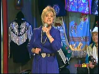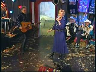 After a commercial break, Marty said, "Welcome back to The Marty Stuart Show, ladies and gentlemen. If you're just joinin' us, we're here with our friends The Riders In The Sky, Superlatives. Cowboy, look, look, look, there they are. It's the cowboy way today. Along with 'Tex' Stubbs makin' the announcements today." Marty laughs. He continues, "But it's about to get more beautiful out here. How 'bout a hand for the great Connie Smith, ladies and gentlemen. Hey baby, come on." Connie sang "Long Black Limousine."