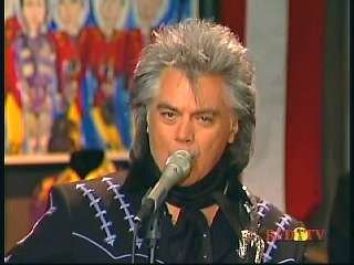 Marty said, "Awww, nothin' but a little hearbreaker. Send that to ole Moon down in Texas. Ladies and gentlemen, welcome to The Marty Stuart Show. We've gotcha covered if you like country music for the next half hour. Stick around with us. You're gonna love it. Superlatives. You know what I saw when I drove up this morning? The big Winnebago with the bullhorns on the top. Could only mean one thing. The Riders In The Sky are in town. Make the boys feel welcome. Hello Riders." They performed "Press Along To The Big Corral."