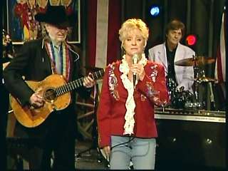 Marty said, "Just exactly right." Willie said, "Thank you very much." Eddie promoted the latest album Ghost Train: The Studio B Sessions. After a commercial break, Marty and Willie were on stage and Marty said, "Welcome, my friend." Willie said, "Hey, Marty, how ya doin'." Marty said, "Fine, Wil, glad to have you here. Thank you for comin' by. Willie said, "My pleasure." Marty continued, "Hey, Connie Smith is gonna come out here and sing a song that you and Hank Cochran wrote." Willie said, "Right." Marty said, "And will you stick around and pick a little bit?" Willie said, "I'd love to." Marty said, "Introduce Connie Smith." Willie said, "Here's my favorite girl singer comin' out here right now. Miss Connie Smith." Marty says, "Hey, hey." Connie sang, "Darling, Are You Ever Coming Home."
