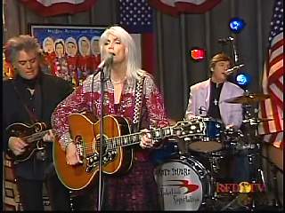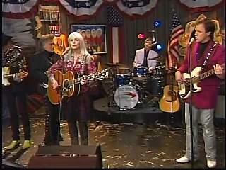Marty said, "I'm honored to have this next lady come by our show. I met her a long time ago and we became fast friends. We've been friends ever since and she's gone on to be one of the most important artists in American music. Two words say it all. Ladies and gentlemen, Miss Emmylou Harris. Come in Queenie. Yes ma'am." Emmylou sang "One Of These Days."