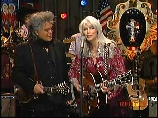 After a commercial break, Eddie Stubbs promoted the Superlatone Store. He introduced Marty. Marty said to Emmylou, "I mentioned at the first of the show we've been friends a long time." Emmylou said, "1973." Marty continued, "That's right. Michigan State. Gram Parsons, Emmylou Harris, Lester Flatt and The Eagles." Emmylou said "Right." Marty continued, "And I also mentioned that you are one of the most important artists ever in American music and I believe that and I stand by that and I thank you for everything you've done for American music. You're great." Emmylou said, "Well, thank you, Marty. Marty does a pretty good job of keeping up the traditional music, doesn't he?" Marty said, "Louvin Brothers." Emmylou said, "Absolutely." Marty continued, "I love 'em. What do you say we do a Louvin Brothers song?" Emmylou said, "I'm ready." Marty continued, "One of your biggies. Here she is." Emmylou performed "If I Could Only Win Your Love."