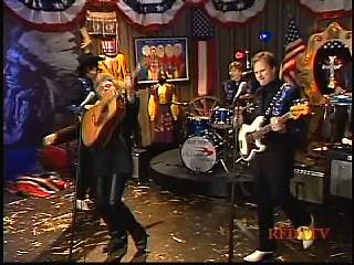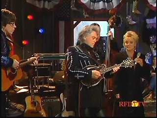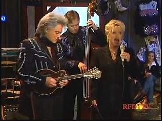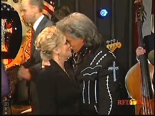 Marty said, "Yes sir. That's The Quebe Sisters. Perfect, ladies. Good guys, good guys. What about it Eddie?" Eddie Stubbs said, "Golly geez, that is first rate. Wow. 'Every Which Way'. Great sounds there from the Quebe Sisters." Eddie promoted the two DVD set of highlights from the first season of The Marty Stuart Show. After a commercial break, Marty said, "Welcome back, ladies and gentlemen. I'm Marty Stuart. You're watchin' The Marty Stuart Show. I'm gonna introduce you to the Quebe Sisters' biggest fan. How 'bout a hand for the great Connie Smith, ladies and gentlemen. Yeah. Come in here my pretty girl." Connie sang "Looking For A Reason."