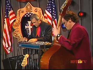 Marty said, "That took care of business. A fine performance." Eddie Stubbs said, " 'My Gal Is a High Born Lady'. Leroy, she sounds like a real dilly right there. You need to bring her by the show sometime. Well we better settle down right now. You know Sunday morning will be here before you know it and we do hope that come Sunday that you and yours will attend the church of your choice. We always get a lot of calls for the songs of inspiration and we've got a beautiful one picked out for you this week on the show. We're gonna let our steel guitar player Gary Carter shine on this one. One of the old traditional favorites .... 'In The Garden'. "