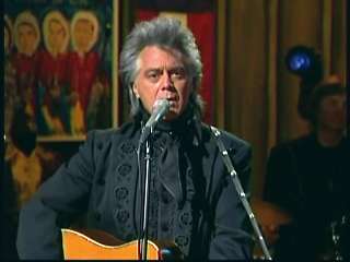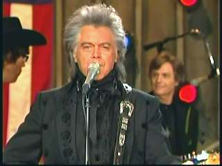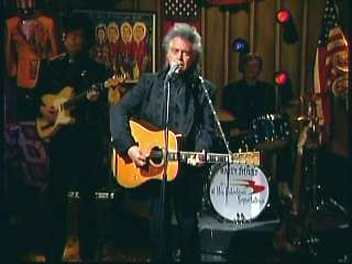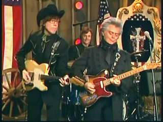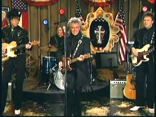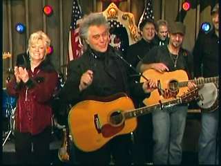 Eddie promoted Marty's book of photographs, Country Music: The Masters. After a commercial break, Marty said, "Glad to have ya back. Our show is sponsored each and every week by the state of Mississippi, the birthplace of America's music. It is indeed a state filled with music and natural beauty. Now, if you need a place to get away from it all, I might suggest you journey yourself to Meridian, Mississippi and visit beautiful Bonita Lakes. Bonita Lakes is one of the largest urban foresttry projects within the city limits in the nation. 3,300 acres feature nature trails where you can walk, run, bike, or do just like I do .... stand under a pine tree and sing your heart out. There's a waterfall and a 100-acre lake on the property that offers boatin', fishin', huntin', hikin'. You can hook up your camper. Get a room at the on-site hotel. Or just lay out in the yard Indian style to enjoy the magnolias, whippoorwills, sound of the distance train or watch shooting stars fall all over the water. Sounds pretty, don't it. You'll find all of that and more at Meridian's Bonita Lakes. How 'bout a hand for the Bonita Lakes. Sounds good, don't it? Speakin' of pretty, Mountain Heart, here he comes. Pretty much one of my favorite people in the world. The ole Tennessee Slicker, the Sultan of Goodlettsville. How 'bout a hand for Leroy Troy. Come here Troy boy. Hey, buddy boy. You know Apostle, Mountain Heart. What's on your mind Goodlettsville Sultan?"