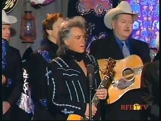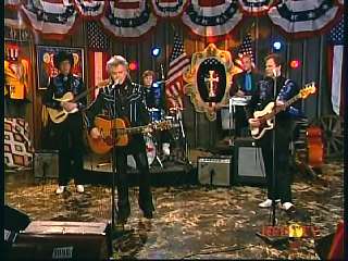 Marty said, "Hillbilly Highway, Cous. Well, that's right. Speaking of 'Hillbilly Highway', well, this man helped invent the hillbilly highway. Handsome Harry, he started it when it was a dirt road." Handsome Harry said, "He sure did." Marty continued, "He's gone on to be one of America's finest. Representing Clinch Mountain, ladies and gentlemen, how 'bout a hand for Dr. Ralph Stanley and all the Clinch Mountain Boys. Here they come, Doc. All right, Doc, Nathan, Ralph II, Dewey, ole Steve Sparkman and brother James." Ralph and the boys performed "Riding The Midnight Train."