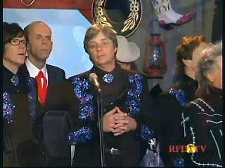 Marty said, "That's just right, right there. Yes sir. Dr. Ralph and all the Clinch Mountain Boys. Fine job, sir. On behalf of Dr. Ralph Stanley and all the Clinch Mountain Boys, The Fabulous Superlatives, Miss Connie Smith, Eddie Stubbs, Gary Carter, Leroy Troy, I'm Marty Stuart saying good night everybody. Thank you for comin'. See ya again next week."