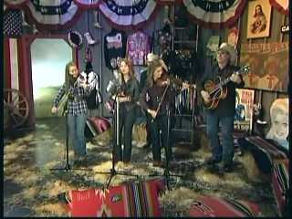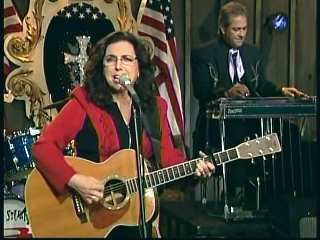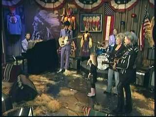 After a commercial break, Eddie Stubbs promoted Connie's Born To Sing boxed set at the Superlatone Store. Eddie said, "Everybody loves Marty Stuart and, most of all, everybody loves Connie Smith. Here they are once again." Marty said, "That's right and everybody loves Eddie Stubbs, too at our house." Connie said, "Everybody loves Eddie Stubbs." Marty continues, "How 'bout a hand for Mr. Stubbs. He's family." Connie said, "That's right. You're family." Marty said, "Well, as I mentioned before, you love family. We're all about family. Love the family of country music. Love our family. And you and I watch for babies to come along that have it, don't we?" Connie said, "Yes, we do." Marty continued, "Paul Martin and Jamie's house is full of it." Connie said, "What a family." Marty said, "Great family." Connie said, "They've got a wonderful family." Marty said, "Full of music." Connie said, "Yes.And I've heard the boys and I've seen them on the show and can we bring out one of the girls?" Marty said, "Yeah." Connie said, "My favorite little singer right now. Her name is Miss Texas Martin." Marty said, "We must have a hand for Texas." Connie said, "She's five years old." Marty said, "Awww." Connie said, "That's how old I was when I said I was gonna sing on the Grand Ole Opry. Here, Texas." Texas sang "Somewhere Over The Rainbow" with proud daddy, Paul, accompanying her on piano.