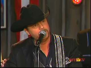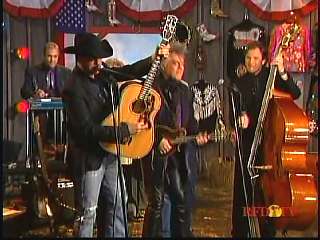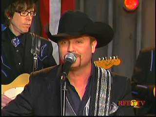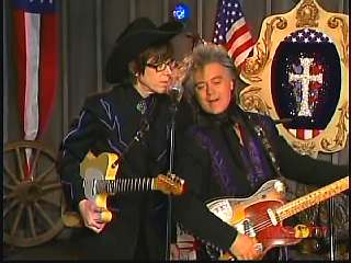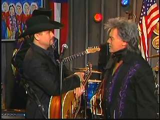 After a commercial break, Eddie Stubbs promoted the "Superlatone Collection" of five CDs, Live at the Ryman, Badlands, Compadres: An Anthology of Duets, Cool Country Favorites and Souls' Chapel. He introduced Marty again. Marty said, "Thank you, Eddie Stubbs. Mr. John Rich." John: "Thank you, sir." Marty: "You're a busy man. Thank you for coming to see us." John "Thank you for asking me." Marty: "I love everything you're doing out there. Thank you for coming. I feel like fightin' down in the South land today. What do you think?" John: "The Battle of New Orleans." Marty: "Let's do it."