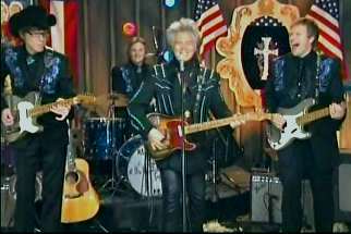 Marty said, "That's the way to do it right there. How 'bout a hand for Terry Eldredge on that good train whistle now." Eddie said, "It's hymn time this week and we're gonna let The Jug Band stay in place and Marty Stuart's gonna lead the verses on this one here that he wrote. 'Are You Prepared To Meet God'."