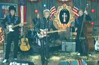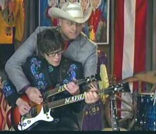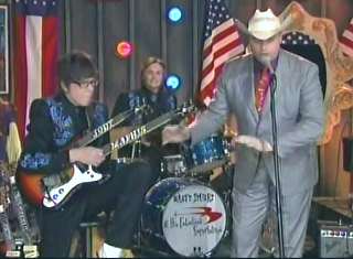 Marty said, "I'm Marty Stuart. So glad you could be with us today. Aww, it's big today, Superlatives. It's big. To begin with, first thing, pulled in the parking lot this mornin'. First thing I saw was the big pulpwood truck with the bullhorns and chrome stacks. Could only mean one thing. The Tennessee Mafia Jug Band's in town. Hello gentlemen. Hello gentlemen. Hello Lester." Lester said, "Marty, how are you." Marty continued, "Come over here. Hello Leroy. Glad you're back, Lester." Lester said, "Good to be here, Marty." Marty said, "Welcome, welcome back. Seems like though every time ya come, there's a few more on stage." Lester said, "Yeah, you know this work-release program's workin' out real good for us." Marty said, "Glad the boys are all out at the same time and sober." Lester said, "All right. Good to be here." Marty said, "What's the name of the song, Leroy." Leroy said, "Sick, Sober, and Sorry." Marty said, "Oh, how 'bout a hand for The Tennessee Mafia Jug Band."