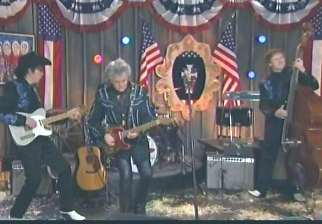 Eddie said, "Marty Stuart right there and singin' it like he's lived it. In fact, he wrote that. 'That's How Lonely Feels'." Eddie promoted Connie's CD boxed set Just For What I Am." After a commercial break, Marty said, "Welcome back, ladies and gentlemen. I'm proud to say that this broadcast is sponsored each and every week by the great state of Mississippi. Now the Magnolia state is regarded as the birthplace of America's music. You'll find nearly 200 historical stops along the Blues and Country Music Trails that run throughout the state and celebrate some of the most notable names and places in American music history. One such name that the entire world knows and loves is Muddy Waters. How 'bout a hand for the cat daddy of the blues. You'll find two Blues Trail markers with Mr. Muddy Waters' name on them. Both located in the Mississippi Delta land. Marker #1 is in Rolling Fork, Mississippi at the site of Muddy's birthplace. And Marker #2 is in Clarksdale, Mississippi at Muddy's cabin. I encourage you to go be a part of that Muddy Waters feelin' in the famous Mississippi Delta land. And 217 miles down the road from the Delta land is Meridian, Mississippi. The Emerald city of Meridian has already more music trail markers than any other place in Mississippi. While another one has recently been added to the Blues Trail and it has my buddy Hartley Peavey's name on it. Been a lot of blues pumped through the equipment that says Peavey on the front. And Meridian is the home of Peavey. So how 'bout a hand for dear ole Mississippi, the city of Meridian which now has a total of six Blues and Country Music Trail markers. Whoo Hoo. Speakin' of whoo hoo, how 'bout a hand for The Jug Band, ladies and gentlemen. Come here, Mikey. Come up here. I know out at Lonesome Lesters Loafin' Lounge, the band hall of headquarters. World headquarters of The Jug Band, the biggest picture out there is Mr. Roy Acuff and the Smoky Mountain Boys." Mike Armistead said, "Absolutely." Marty said, "You guys have done a wonderful job of keepin' Mr. Acuff's wonderful music alive. And we're honored to have on our set today, Bashful Brother Oswald's dobro in the good hands of Mike Webb. How 'bout a hand for Os and Webb. Play me just a little bit of 'The Cannonball'. Could ya sing 'The Sunshine Special' for me." Mike said, "Absolutely." Marty said, "How 'bout a hand for Mike and 'The Sunshine Special'."