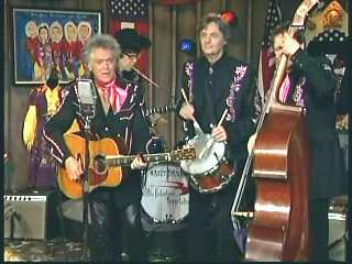 Marty said, "Hard to beat that. Hard to beat that, pal. Get it." Eddie said, "Leroy Troy right there and 'Five Pounds Of Possum'. Imagine such a thing. Only on The Marty Stuart Show will you hear something like that. Well, it's hymn time this week. We're going to ask The Superlatives to gang around and join Miss Loretta Lynn on one of her songs, 'Everybody Wants To Go To Heaven'."