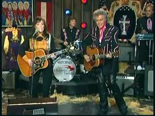 Marty said, "Miss Loretta Lynn, everybody. That's my girl. Thank you so much. On behalf of Loretta Lynn, Connie Smith, Leroy Troy, The Fabulous Superlatives, Gary Carter, Mark Casstevens and Eddie Stubbs, I'm Marty Stuart sayin' 'thank you for joinin' us.' We'll see ya again next week right here on The Marty Stuart Show. I love you." Marty kisses Loretta.