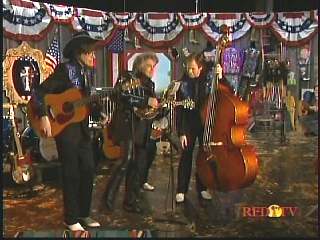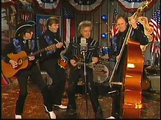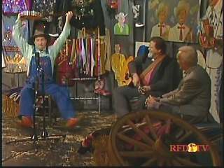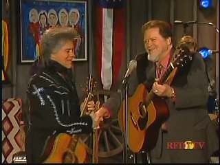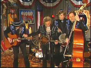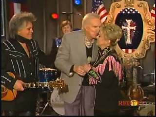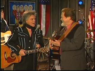 Marty and Kenny were dancing throughout the song. Eddie Stubbs danced over to the microphone and Marty said, "Get in there swanky. Whatcha gonna talk about, Eddie boy?" Eddie said, "I got the Truck Drivers' Blues and you're makin' me dance. And everybody loves Marty Stuart doing the 'Truck Drivers' Blues'." Eddie promoted Connie Smith's Born To Sing boxed set. After a commercial break, Marty and Connie were on stage. Marty said, "Constance, it's time." Connie said, "It is time." Marty continued, "For the Sultan of Goodlettsville, the most popular man in country music, Mr. Emery. How 'bout a hand for Leroy Troy, the ole Tennessee Slicker. Where is he? Come out, Leroy. Have a seat. Brought you a chair. You know Dallas and Ralph. Whatcha got in mind to play for us?" Leroy: "Grandfather's Clock." Marty: "One of the precious songs of all time." Leroy: "And I sure hate to do it." Marty: "What? Well get it over with." Leroy: "I am." Marty: "All right." Leroy: "Right now. Here we go." Marty: "All right." Leroy: "Take one." Marty: "All right. He's off to a good start." Leroy: "Yeah, I about forgot about this." Marty: "Uh ha. Yeah." Leroy: "Hickory, dickory dock. Two mice ran up the clock. The clock struck one. The other got away. Hickory, dickory dock."