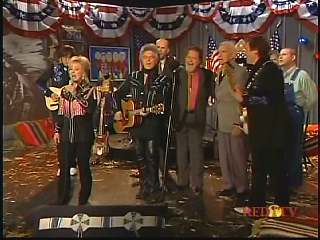 Marty said, "It's an honor, sir. Thank you so much, Dallas. I'm Marty Stuart. That's Dallas Frazier. On behalf of Dallas, Connie Smith and Ralph Emery, Leroy Troy, The Fabulous Superlatives, Gary Carter, and my man Eddie Stubbs, I'm Marty Stuart. Hey, thank you. Come back and see us next week."