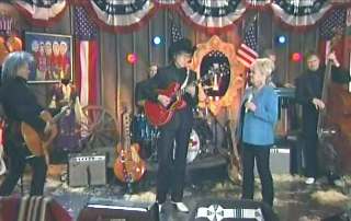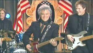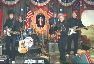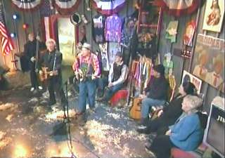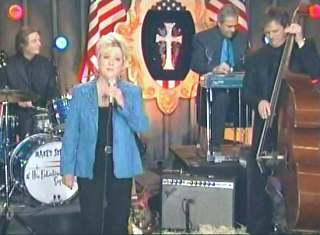 Marty said, " 'Going Nowhere Fast'. Yeah. Ladies and gentlemen, thank you for join' us on The Marty Stuart Show. Superlatives. There it was goin' nowhere fast. Aww, I'm lookin' forward to this show. This is gonna be one of my favorite shows, I can tell ya right now. My favorite country singer in the world is here. Mr. Dale Jett and his band Hello Stranger. The Carter Family is who I love so much. The music of The Carter Family. Dale Jett is a third generation Carter. Uncle A.P. and Aunt Sara's grand young'un. And Mother Maybell's grand young'un, Miss Lorrie Bennett, is here and they're just some of the Carters that's keepin' that music alive. Here with a brand new Tom T. Hall song, would you do me a favor and welcome Mr. Dale Jett and Hello Stranger." Dale Jett and Hello Stranger performed "When The Sun Comes Out Again."