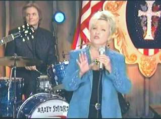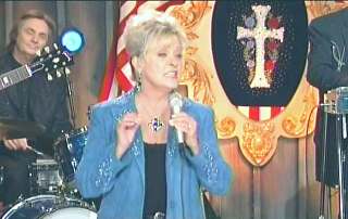 Marty said, "That's mighty beautiful. That's mighty pretty. Thank you Dale, thank you Oscar, thank you Teresa. Dale Jett and Hello Stranger." Eddie said, " ' When The Sun Comes Out Again'. Fine job there from Dale Jett and Hello Stranger." Eddie promoted Kenny Vaughan's V. After a commercial break, Marty said, "Welcome back everybody. Hey, how 'bout a hand for Dale Jett and Hello Stranger over here on the hay bales. And how 'bout a hand for my mama and daddy, John and Hilda Stuart, right over there on the front row today. Welcome mama. Welcome daddy. And how 'bout a hand for John and Hilda's daughter-in-law comin' through the red door. How 'bout a hand for Miss Connie Smith, ladies and gentlemen. Hey Constance. Sing us one of your pretty RCA songs." Connie said, "I'll do it." Marty said, "Whatcha gonna do?" Connie said, "Too Many Rivers." Marty said "All right."